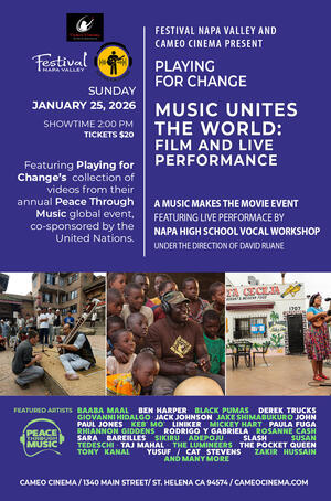 Water: Essential in Art and Life is a Cameo Cinema program that will raise awareness and appreciation for the inspirational aspect of our oceans, rivers, and bays. Over the months of April and May, the program will explore the essential role of water both as a vital component for all life forms and as a source of inspiration for film, literature, sculpture, and more. This program is made possible by a grant from the County of Napa's Art and Culture Advisory Committee with additional support from the Cameo Cinema Foundation.